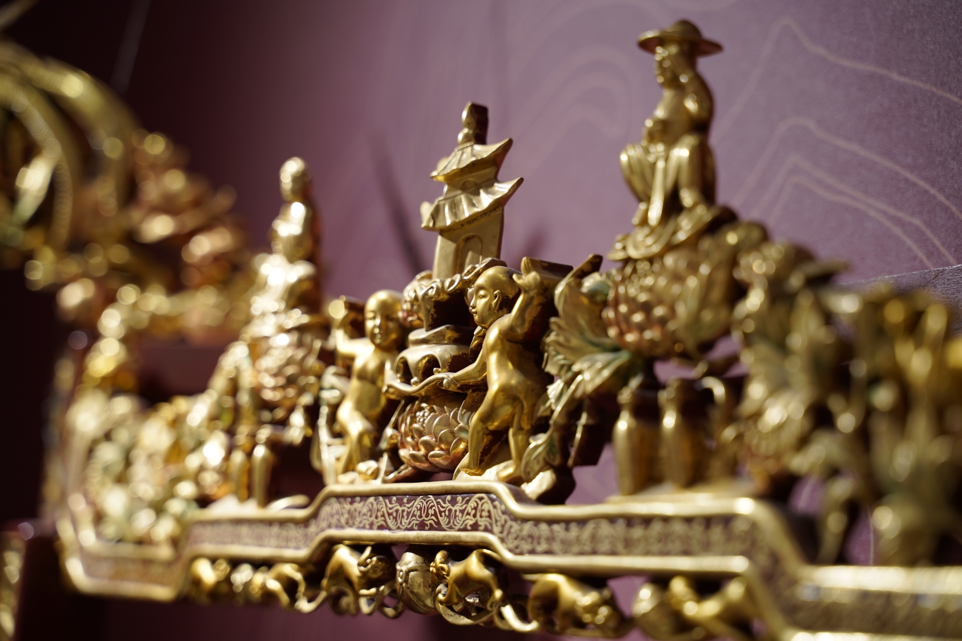 本次“又见红妆·爱情与亲情”展览聚焦宁波传统工艺的瑰宝——朱金漆木雕、泥金彩漆、金银彩绣与骨木镶嵌,打造非遗盛宴,观众穿行其中,观百工精巧,品世间真情。开幕期间还能沉浸式观看朱金漆木雕万工轿的内部华美构造,感受VR体验带来的视觉冲击,现场同时还有金银彩绣技艺展示等非遗活动,精彩纷呈。